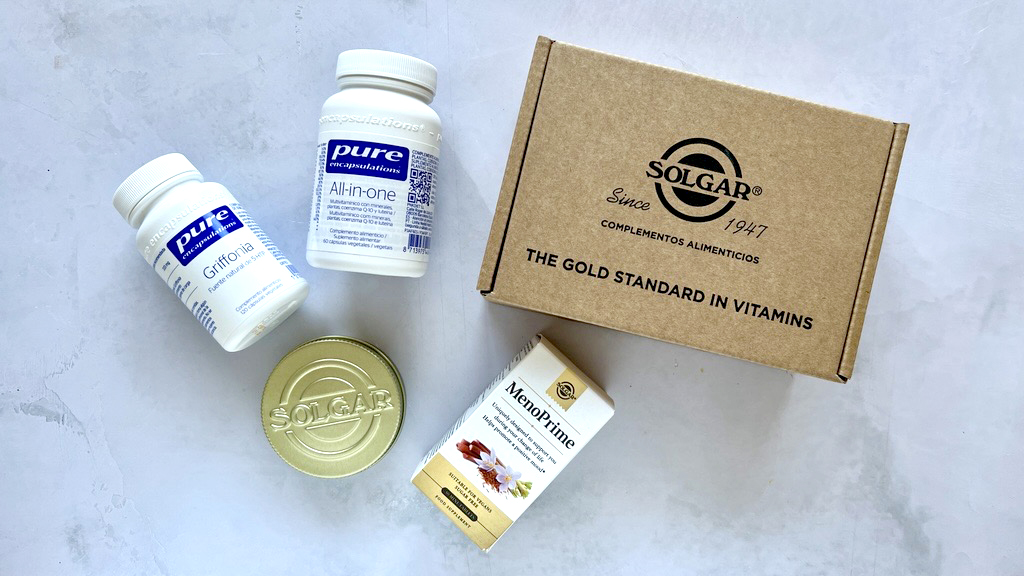 MenoPrime de Solgar + Griffonia de Pure + Ashwagandha de Pure + Melatonina de Solgar + Pastillero